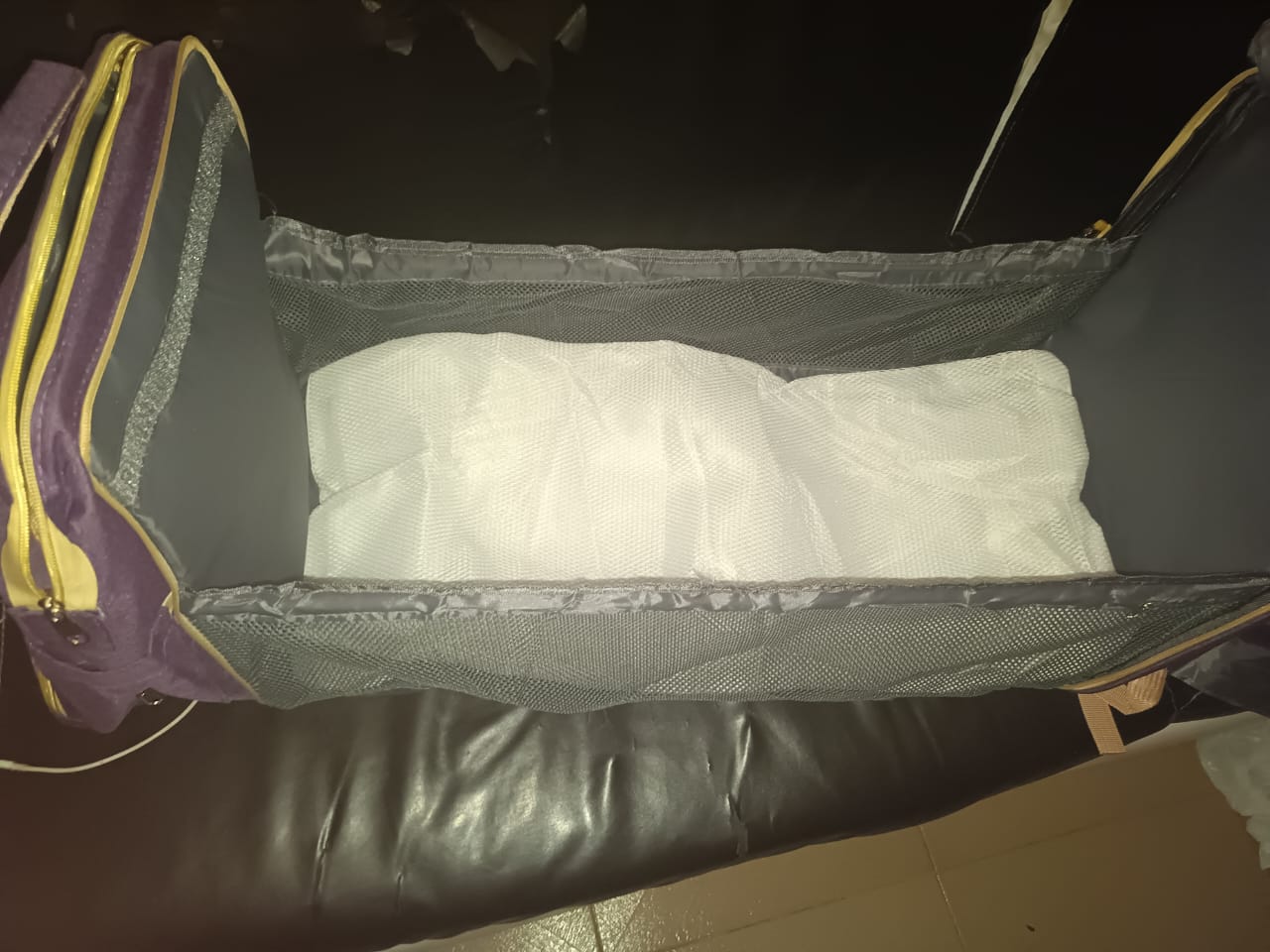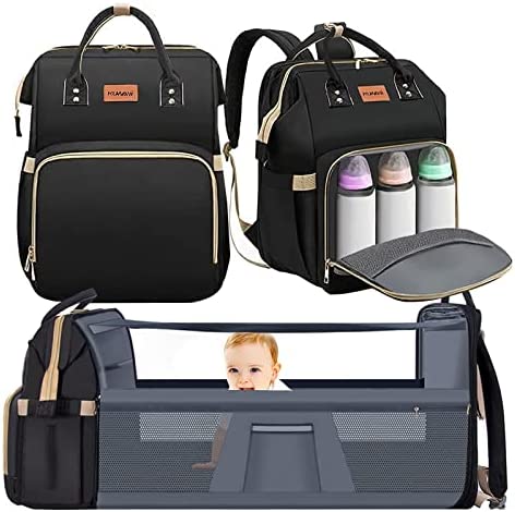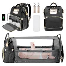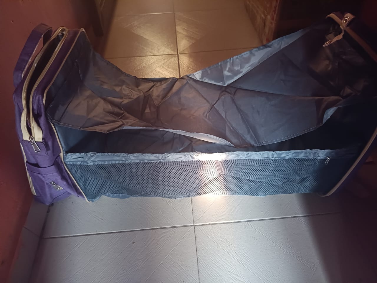 The baby diaper bag is equipped with a portable diaper bassinet with a soft diaper pat inside, a mesh structure, and mosquito nets on both sides. There are 2 crossbars to fix the bassinet. This design is beneficial for babies to protect their eyes in the sunshade. it’s an additional feature special for diaper changing or sleeping babies, a comfortable space
