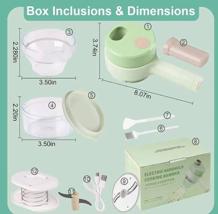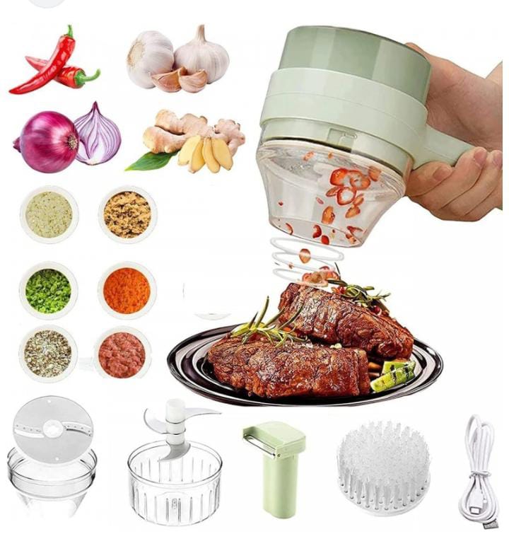 Make cooking fun and easy using our 4-in-1 Handheld Rechargeable vegetable cutter set.