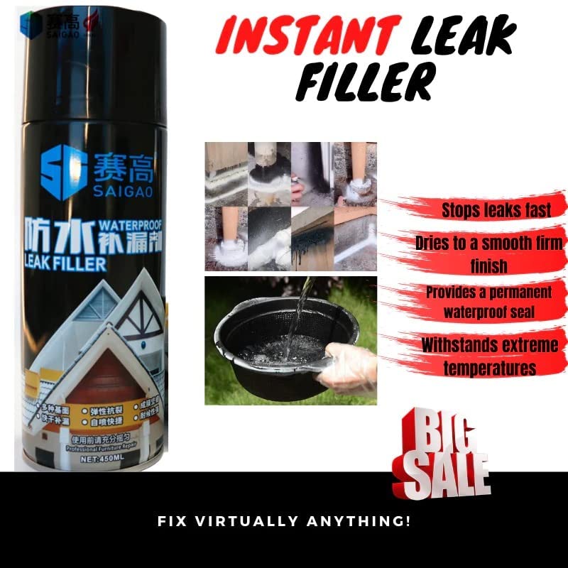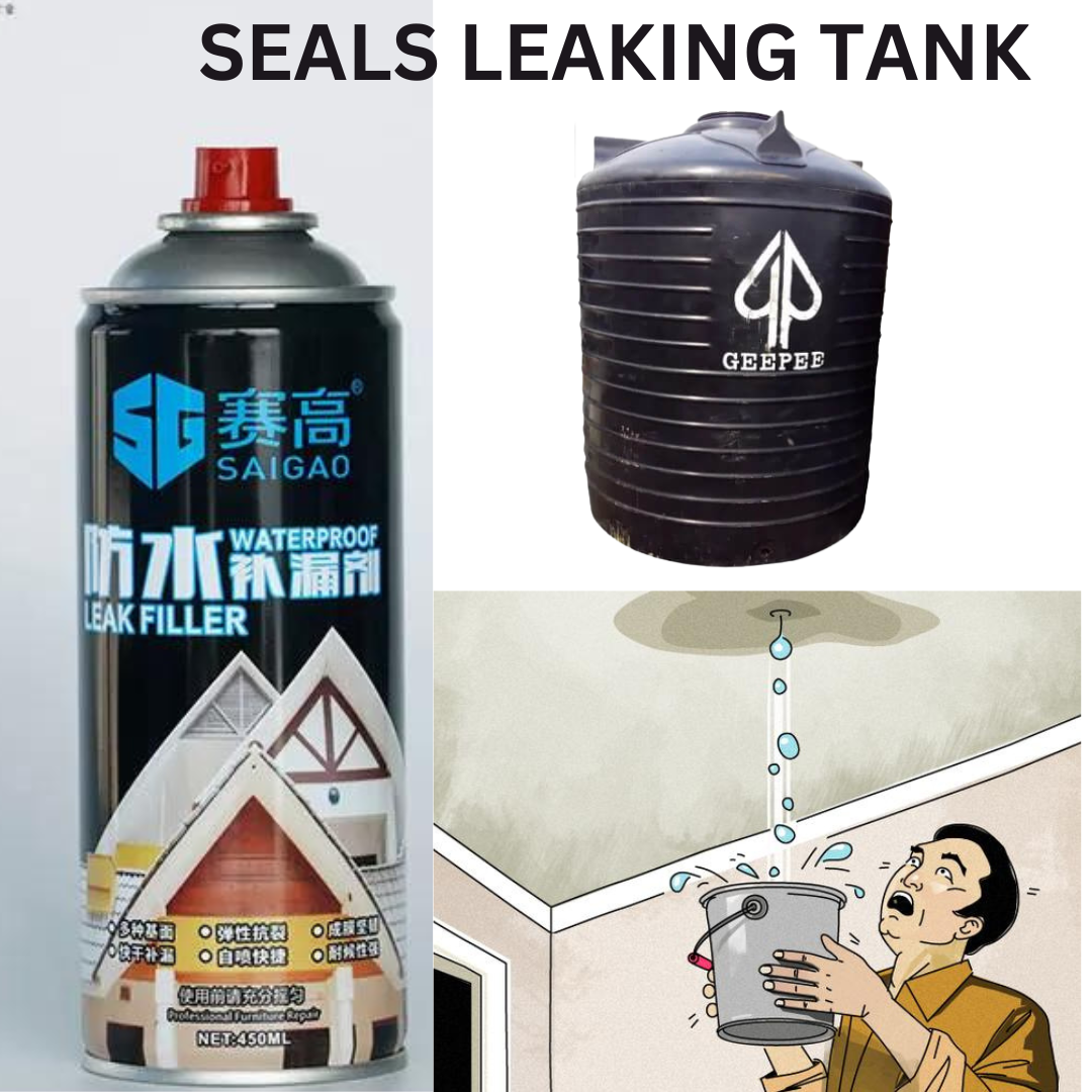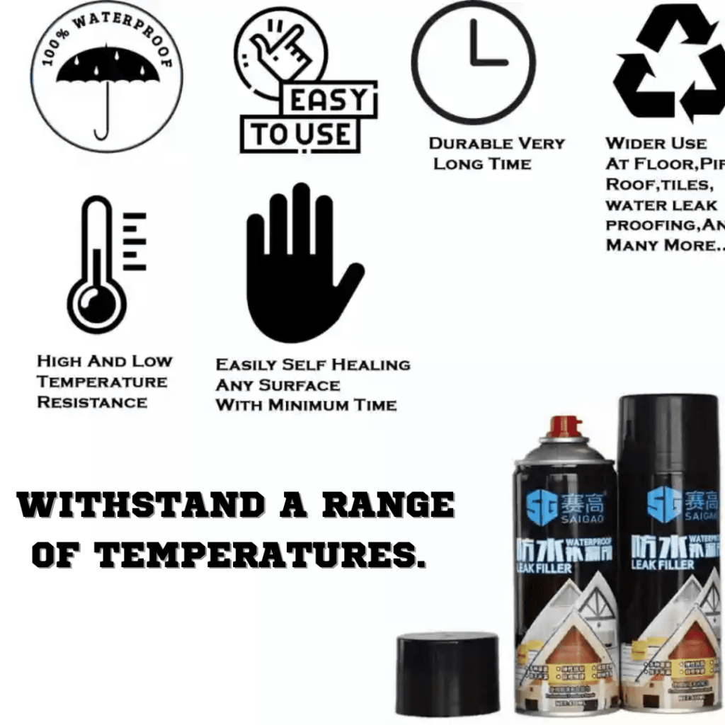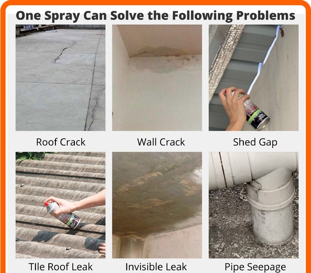 This Multifunctional Waterproof Repair Sealant Spray Can Fix Toughest Leaks In Water Tanks, Roofs, Cracks, Shingles, Metal Roofs, Chimneys, Skylights, Gutters, Pipes, And Much More Using A Permanent And Easiest Way To Fix The Leaks Around Your Home, Office, Pipe, Cars, Tanks, Roof Without Leaving Any Loophole For Further Leaks In Your Indoor And Outdoor.