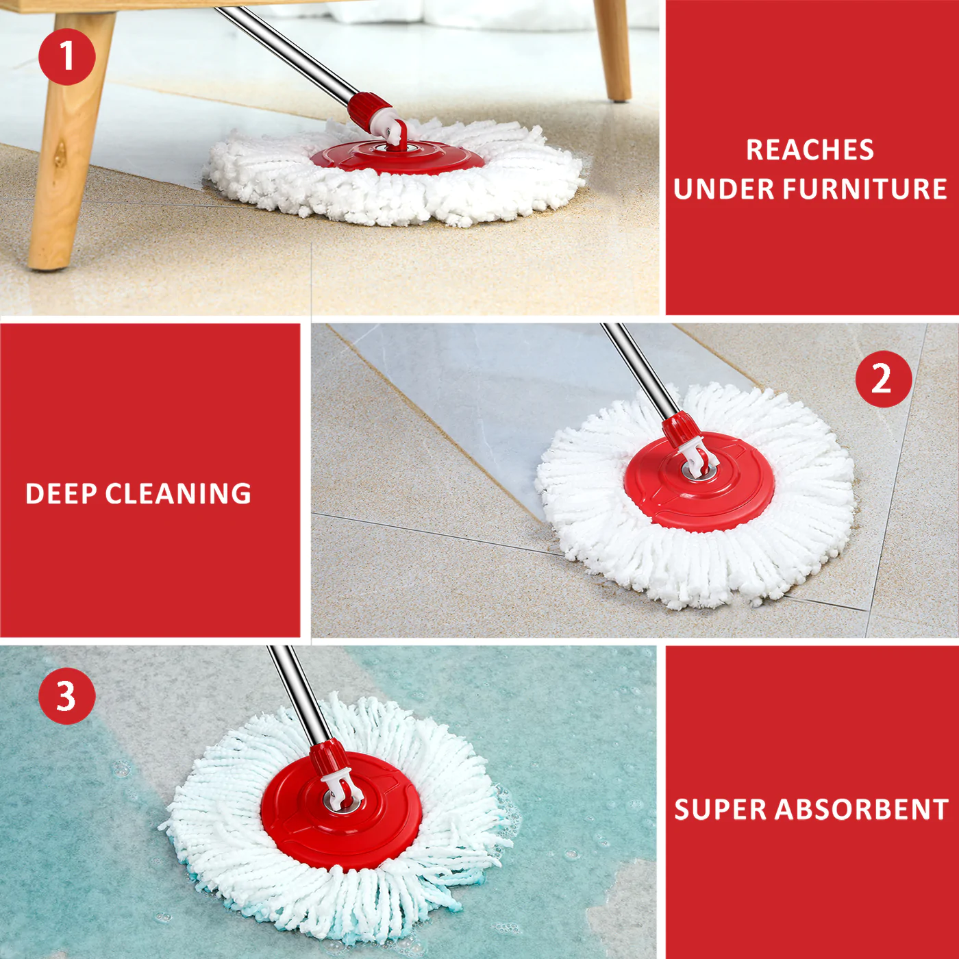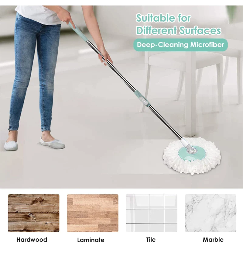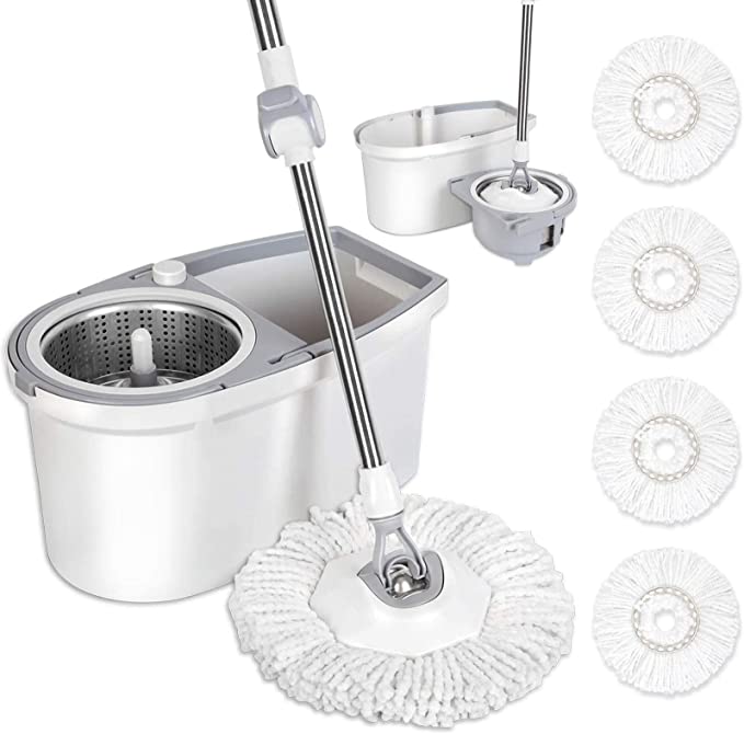 HANDS-FREESelf-wring Spin Mop: Stainless steel wringer basket rustproof and durable. Easy Wring bucket system clean and dry the dirty mop without need to touch it, makes the cleaning process a lot easier.