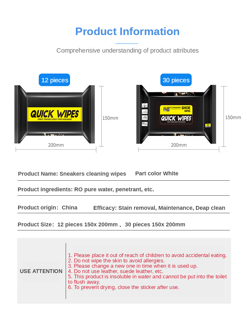 I love this product. This is my 4th time ordering these shoe wipes. They work great. Each time I get home, I use these wipes to keep my sneakers clean. Simple and easy to use.